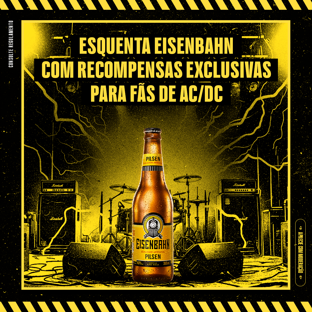 São Paulo, fevereiro de 2026 – A Eisenbahn, cerveja premium do Grupo HEINEKEN e patrocinadora da PWR UP TOUR no Brasil, irá ajudar os fãs de AC/DC que não conseguiram ingresso para o show da banda australiana no país com a ação Combo Premiado Eisenbahn. Entre os dias 20 e 27 de fevereiro, bares selecionados de São Paulo, Ribeirão Preto e Campinas serão palco da ação que levará shows de bandas covers e brindes exclusivos.